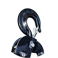 正品9噸飛鴿手扳葫蘆上、下吊鉤如上圖所示,顏色為黑色,內(nèi)徑為20cm,上面有相應(yīng)噸位烙印,開口處有防止脫鉤異常的舌片組件設(shè)計(jì),如有缺失、漏印則為假冒偽劣產(chǎn)品。